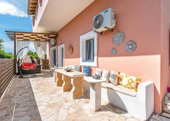 Olive Grove Deluxe apartment de 80 m^2 est situé à moins de 5 km du Nissaki Bay et à une distance de 3 km de la Plage de Kalamionas. Un patio, un balcon et une kitchenette sont présentés dans chaque chambre à la villa.